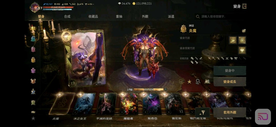 3金變(冰女王、巫妖、炎魔):炎魔LV19