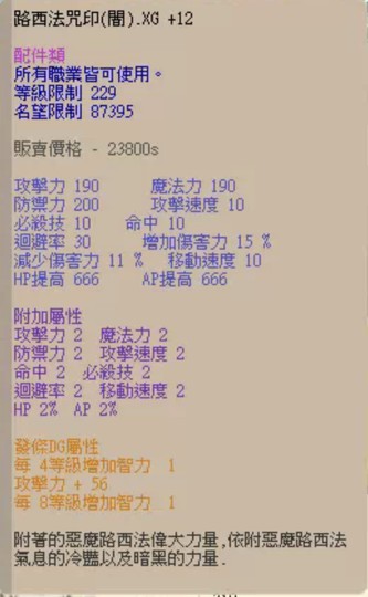 路西法咒印(闇)全2屬 XG+12