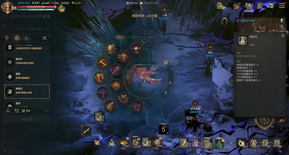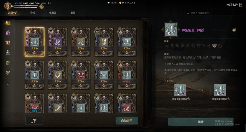 身上還有一個+3貫穿符石(目前四紫技身上咒語幣56萬可換多一紫暫時不換等新職業中)