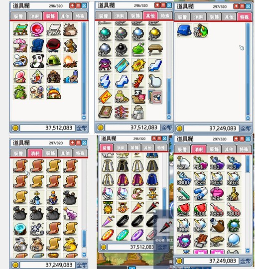 有永久造型券,永久寵物草尼瑪,背包目前320格,還有4個神秘背包,10個護身符,還有33雪。