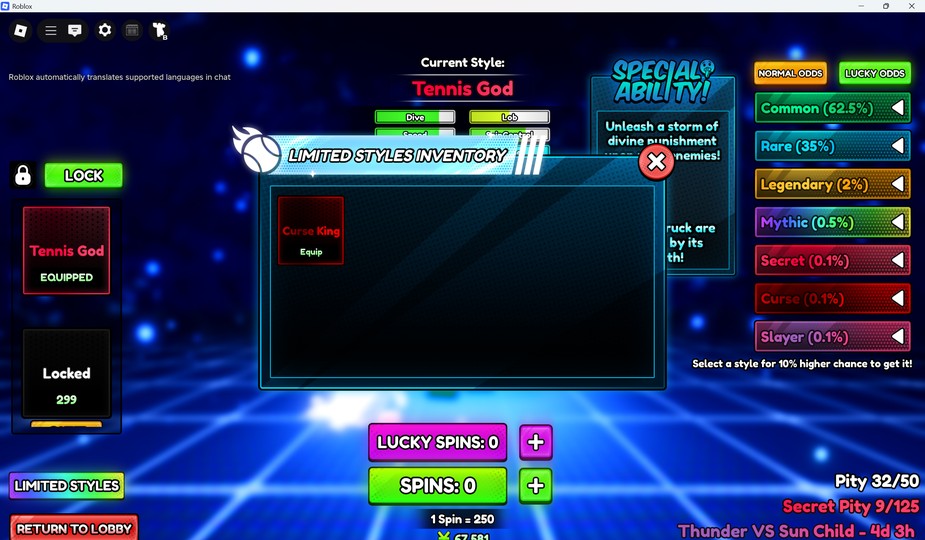 Tennis:限定角色 一堆幸運抽 最高等級特效 emote