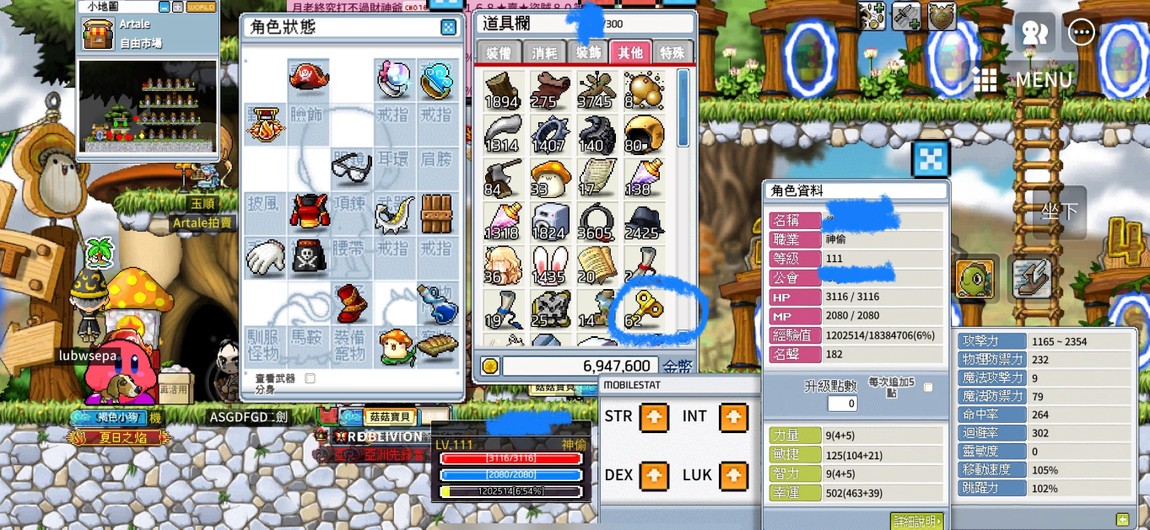 【111等、神偷_暗影神偷】一手帳號/有眼鏡還有60個鑰匙🔑/背包300/寵物123/通行證/洗血滿
