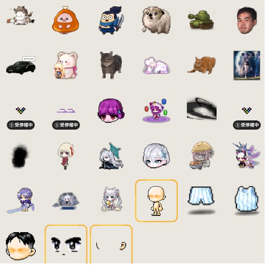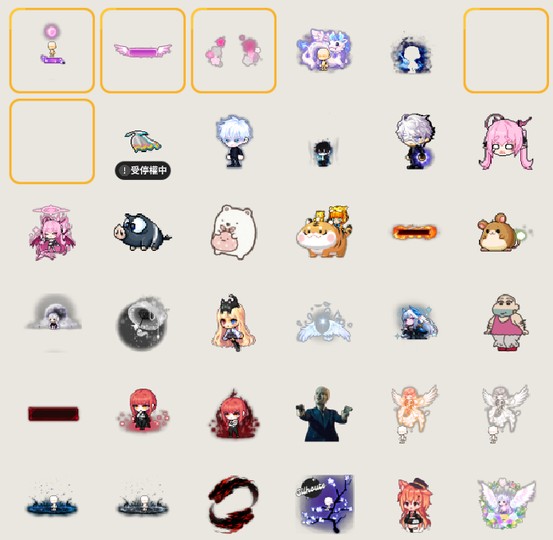 乾表2533、背包500格、永久造型卷、寵物自動施放123、多款美金造型、身上約剩7千萬楓幣及一些雜物。