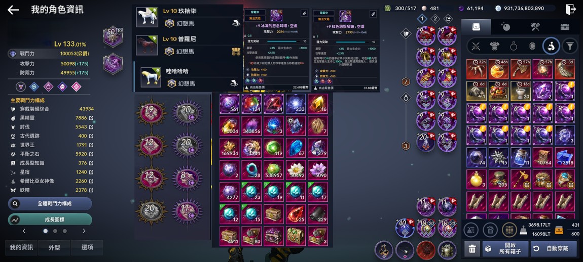 【133等】1008xx戰力,三幻想馬,特效項鍊耳環黑珍珠6萬