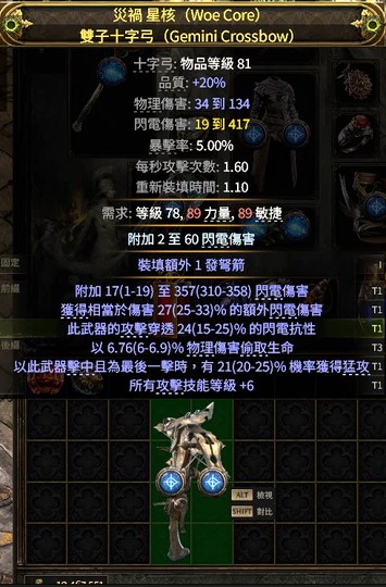 【十字弓、T1閃電傷、+6等級】電噴 無情十字弓 T1高閃電點 T1額外閃電傷 T1閃電穿透 +6等級 猛攻