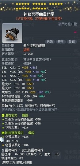 主潛能:70%BOSS13%物攻(次頂主流主潛能 企盡80%BOSS10%物攻)
