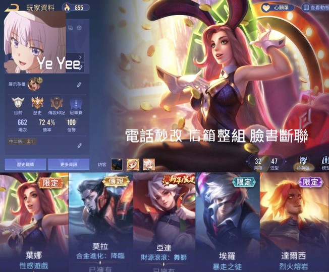 【G帳手機信箱可改、鉑金、V1、32英、47造】葉納全幻化含兩顆水晶要的私價可議實收