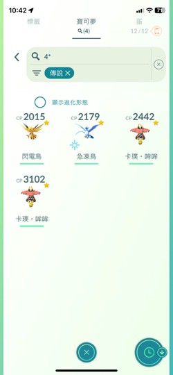⭐IV100:卡璞哞哞x2(CP3102、2442)、急凍鳥CP2179(淨化)、閃電鳥CP2015、綿綿泡芙、鐵啞鈴x2、圓絲蛛x3、懶人獺x2、豆豆鴿、圓陸鯊、牙牙、妮多蘭、阿柏蛇、喇叭芽、探探鼠、臭鼬噗、姆克兒、小牧靈、夢妖、熔岩蟲⭐(共24隻)