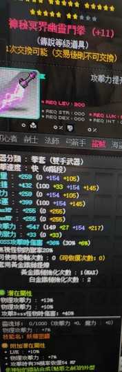 武器顯示魂潛能:7%物攻(最高限制%BOSS魂潛能)