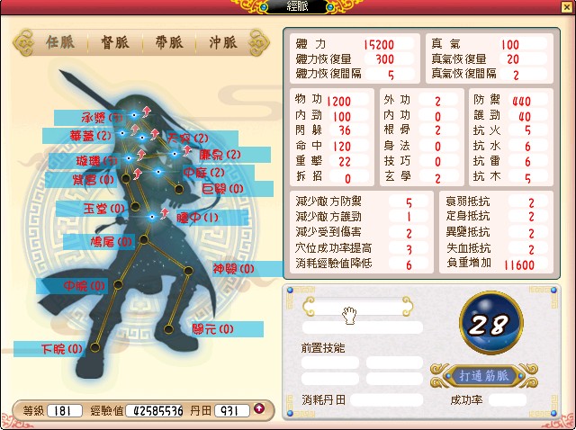 181外匕全資 經脈約點了8000點 物1200滿