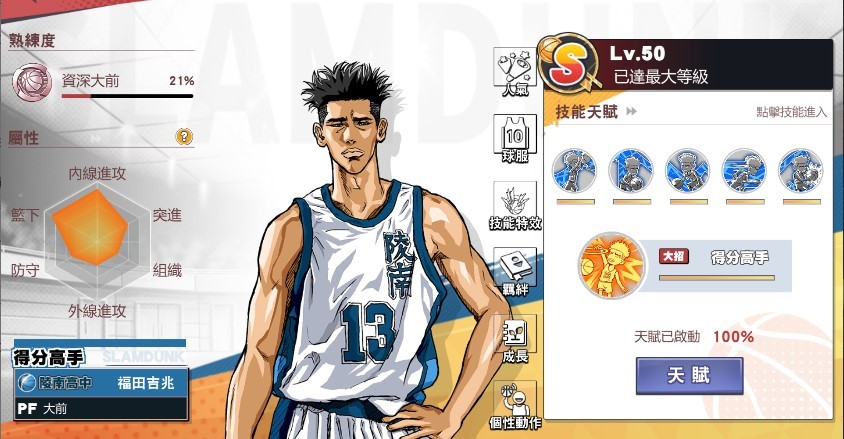 一般與集訓角該有的都有~!!!(功能角色:集赤、老牧、宮益、集高、木暮、老赤都9覺)