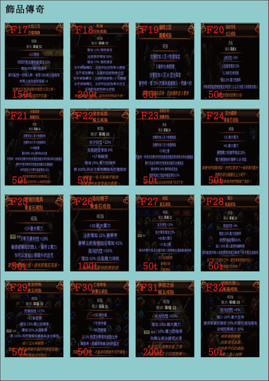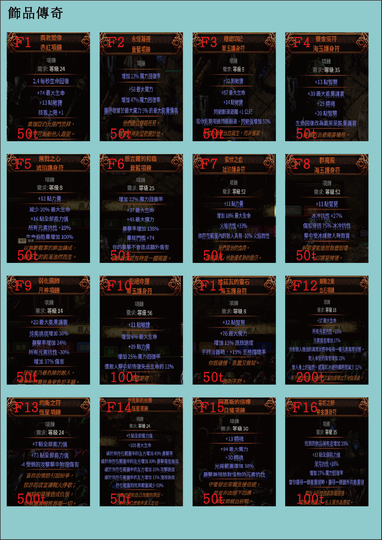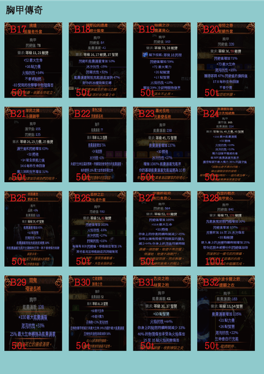 技能通貨B=200t (輔助寶石5階*20+技能工匠石*20+高階工匠石*4+完美工匠石*1)
