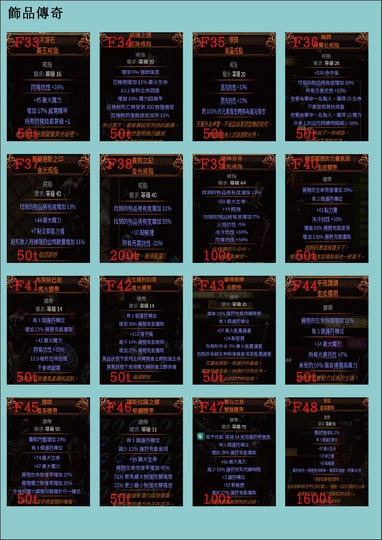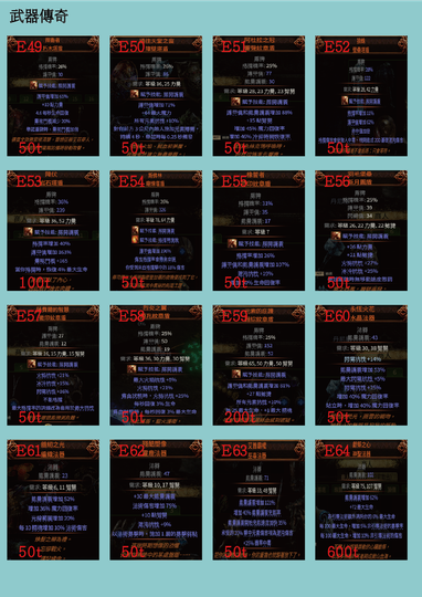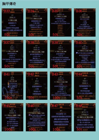 如果有沒在表上的裝備也可以幫你協尋(有些太冷門的傳奇裝備,就沒放到圖片上)