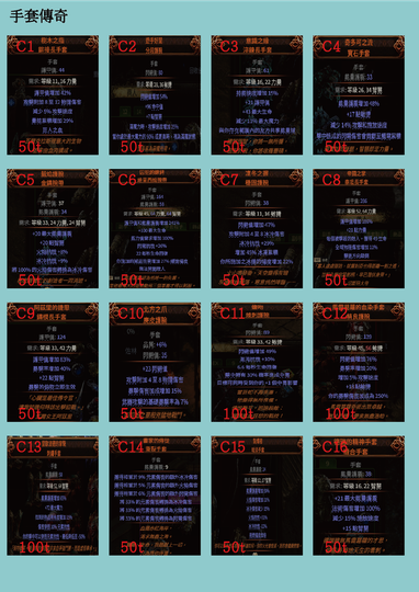 技能進階C=1000t (輔助寶石5階*50+技能工匠石*50+高階工匠石*20+完美工匠石*10+寶石匠的稜鏡*20)