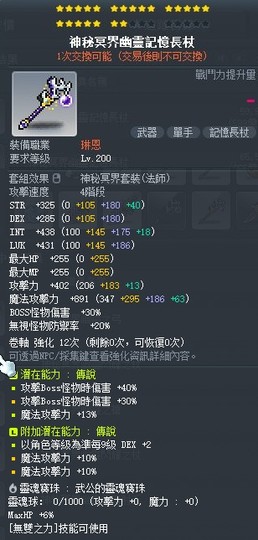 【神秘冥界幽靈記憶長杖】22星 武公 70B13魔攻 救世卷軸 雙傳 雙S 琳恩