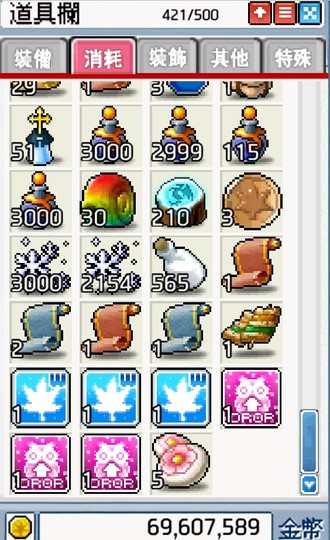 背包不清,還有210瞬移石,10+個護身符,5個喇叭,1張SP捲