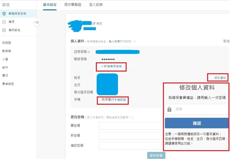 可修改個人資料
