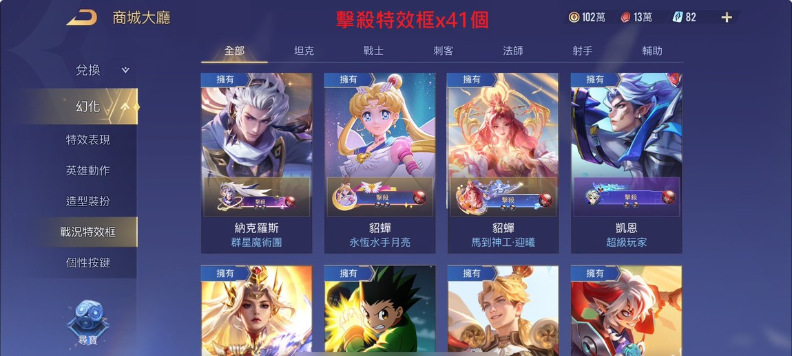 【Garena帳無綁無連、永恆傳說、V10、126英、1041造】近全造、全次元、全永恆、全新年、全鬼滅、全咒術、全獵人、全死神、全典藏、近全聯動