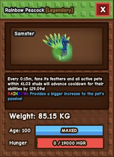培養花園-天生巨大彩虹孔雀,82、84、87公斤,15秒免玩具,cd可減寵物技能
