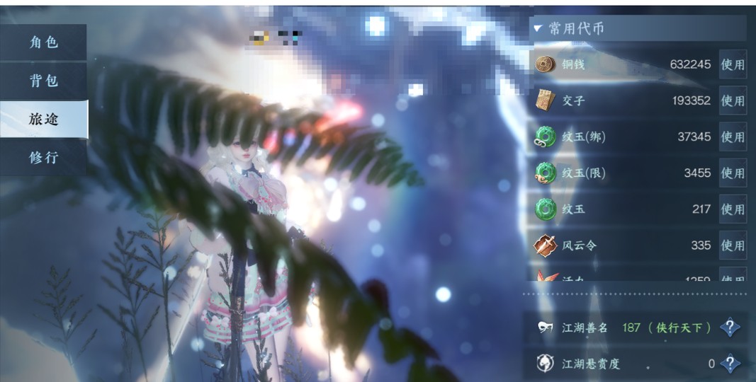 【NYRRD2429】職業:神相;總評:450018;衣品值:47265;國色值:0;已用天賞石 4 顆;未用天賞石 2 顆;天霓染數量 0;灵韵數量 1;稱號:憑栏听雨;充值金額:9688 元,贈禮剩餘額度:19376 紋玉,套裝數量:0;【武器外觀】:火焰武器;【天賞祥瑞】:南山雪;【限定外觀】:輕功決天馬;裝備特技 1 金;【灵韵內功】:斷金戈;莊園等級;育宠圖鑒等級 9 級級;詳情看圖【網易手機】【瑤光听雪】【官方截圖】