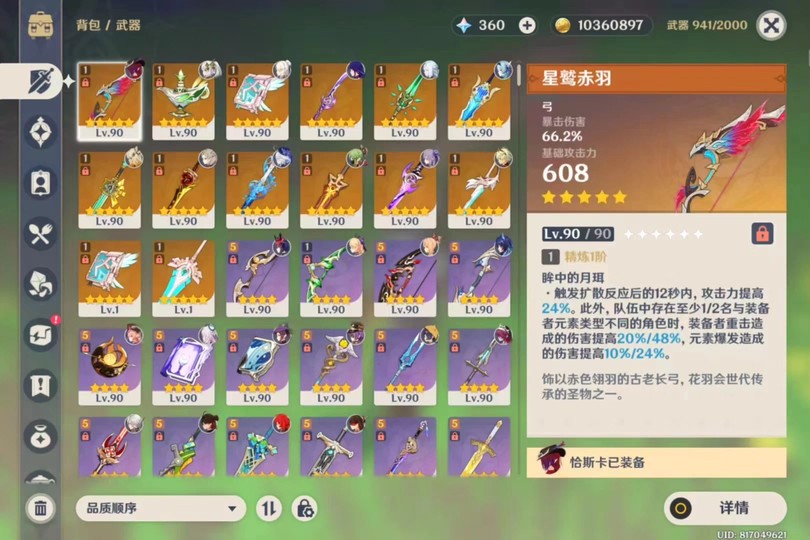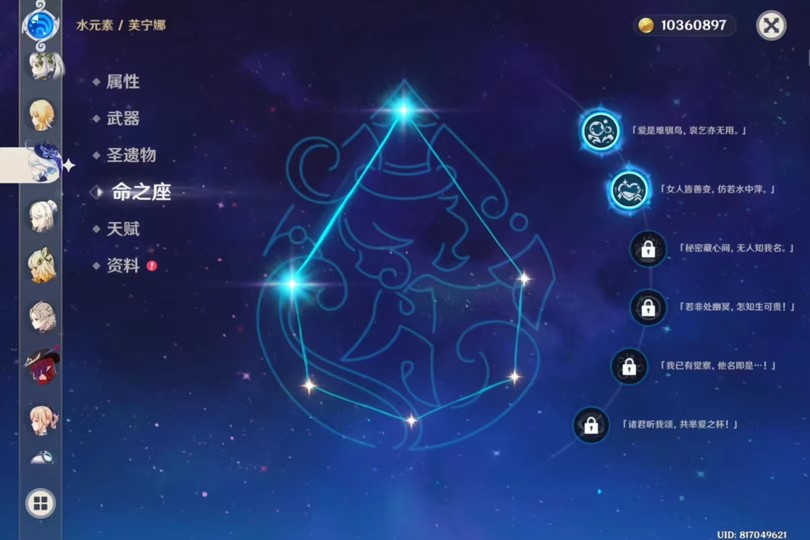 【女、59等、8金角、14金武】雙滿命54金 滿命6+1雷神 滿命6+1優菈 2+1草神納西妲 水神 詳情看圖檔