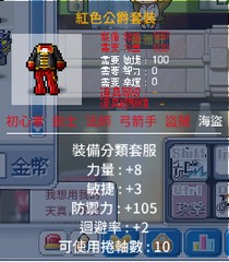 乾淨 11 屬 100 等海盜套服 8 力 3 敏 2 迴避