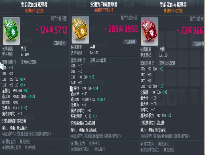 受詛咒的黃魔導書5%全+15智+15幸2500