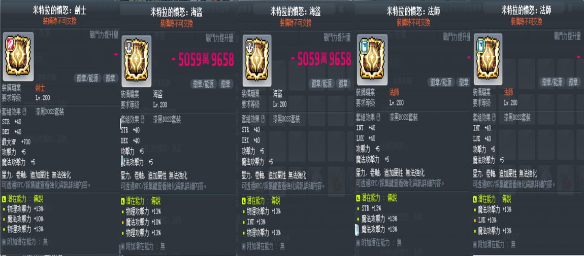 劍士、弓箭手、海盜、盜賊、法師、米特拉2500(主框26%物理/魔法攻擊力)