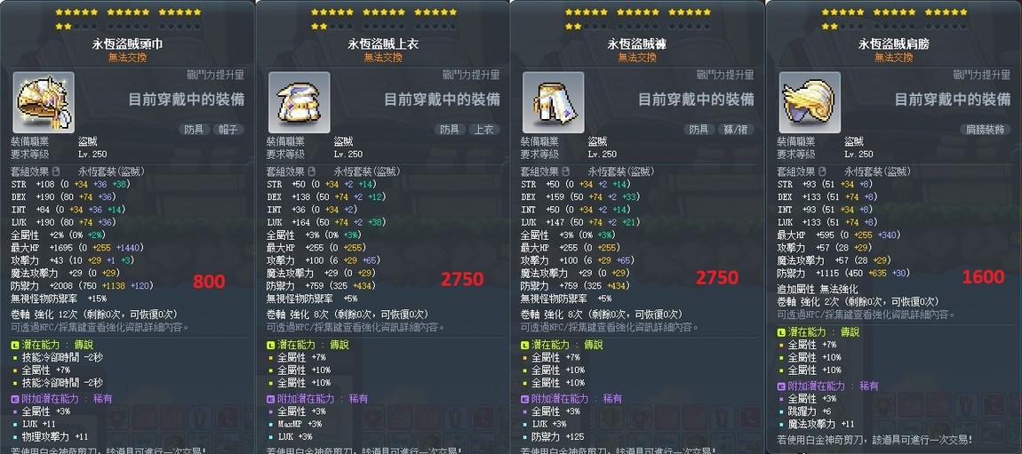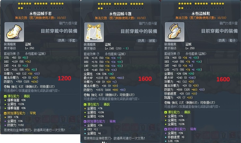 【境界者專賣店】永恆弓手帽、根源的耳語、全面控制核心、永恆盜賊海盜大衣&褲子&斗篷、頂培、漆黑