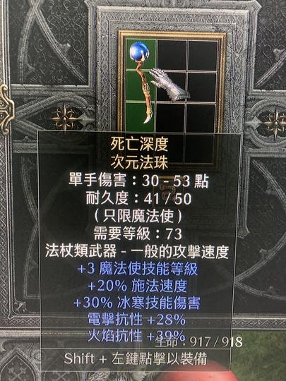非天梯 死亡深度 30冰傷 28電抗 39火抗