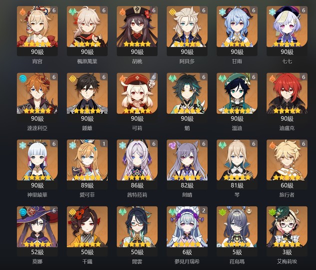 這是自己兩隻最頂的原神帳號(聖遺物都有先練兩年後.挑過的帳號