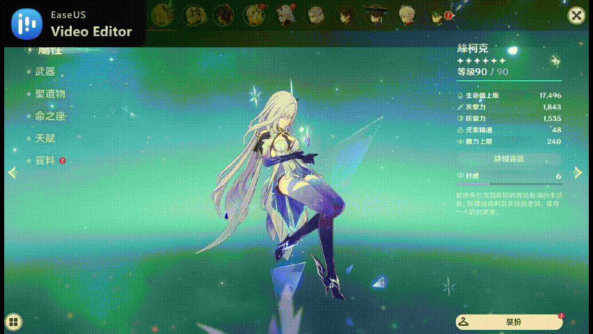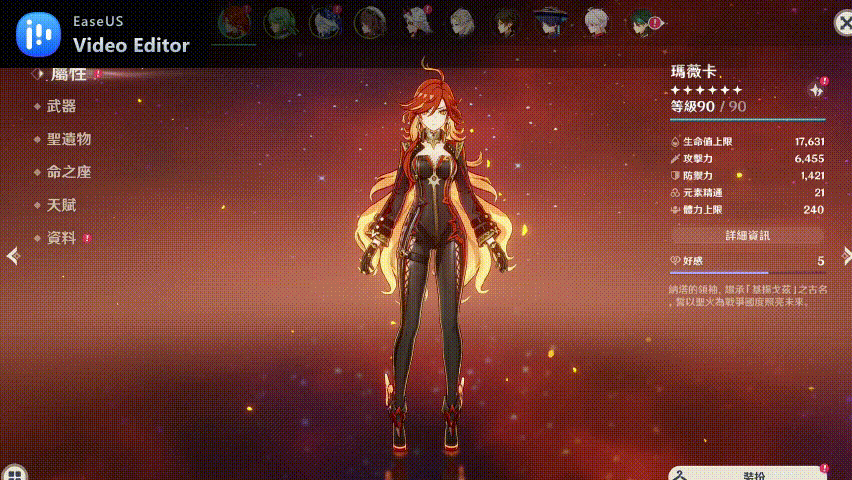 角色配裝的影片也會一起給(因為聖遺物太多了,記錄成影片方便