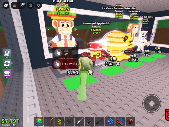 1.9M蟑螂75 4M桌子125 2.4M土星牛100