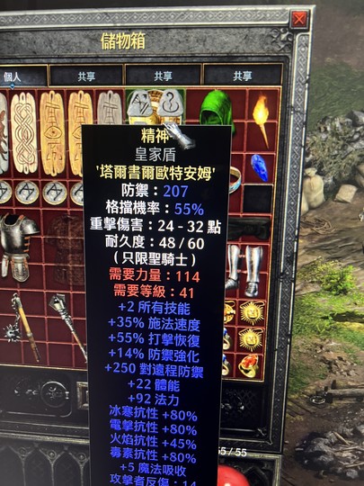 正手武器:橡樹40抗 剛毅+3祝鎚+1救贖+1招降30全抗*1