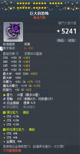 【巨大的恐怖】雙傳25星39%力巨大的恐怖 附加865力 25星39865力巨大白5全b~