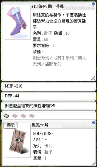 +10 綠色 戰士長靴~防共+224~HP+210~惡魔抗性+3%