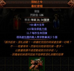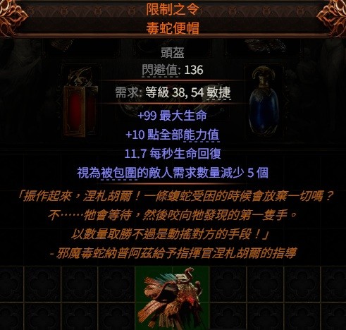 【頭盔、包圍頭盔】PoE2👌傳奇→限制之令.毒蛇便帽 ( 全能力值、生命秒回 )