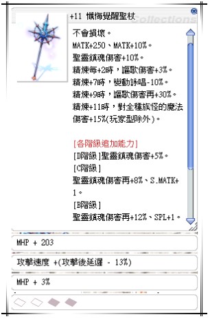 另有+11 懺悔覺醒聖杖(無插卡.後延遲.MHP)= 150T