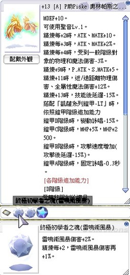 終初專用 +13A奧林帕斯之翼 / P助卡片 / 魔力星光Lv1 / 雷鳴術風暴