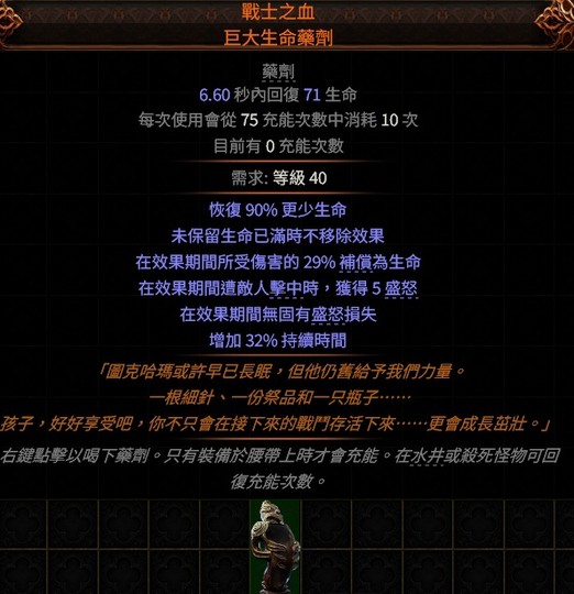 PoE2👌傳奇藥劑→戰士之血.巨大生命藥劑(補償為生命、盛怒)