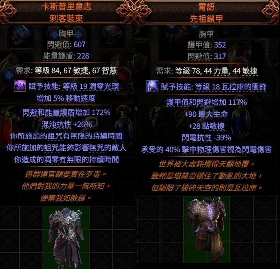【胸甲、歡.迎.光.臨】PoE2👌卡斯普里意志.刺客裝束(凋零光環、詛咒)雷語.先祖鎖甲(物理轉閃電