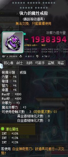 【36%智力大魔】36%智力強力的魔性戒指/36%智大魔/法師用