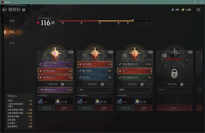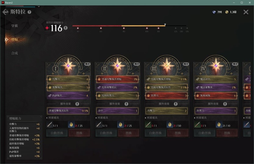 詳細如圖,鑽石會浮動,可以當成沒有,若有使用,都是花在提升機體部分!