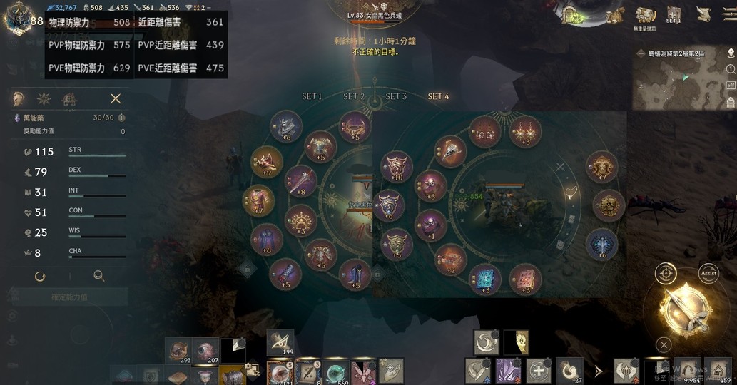 飾品:+3祝福變怪戒指(防禦1減免1)(刻印)、怨恨耳環(防禦1)(非刻印)、祝福不死項鍊(防禦1+1)(非刻印)、+1阿爾卡利亞戒指(刻印)、+2祝福泰坦皮帶(近命2減免2)