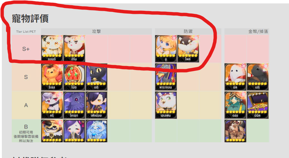 從表格可以看到 S寵都有(A/B有抽到一些 都分解了,拿去洗研芝下面三排淺能)