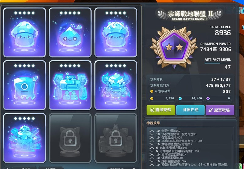 高進度箭神退谷出,三大件都畢業, 全面控制核心25星. 鬼滅P一隻+4隻永久殺人鯨+2件90攻寵裝