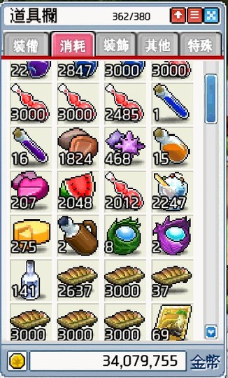 如圖 另外還有各種卷軸 及裝備武器都是收來衝裝賺錢用的