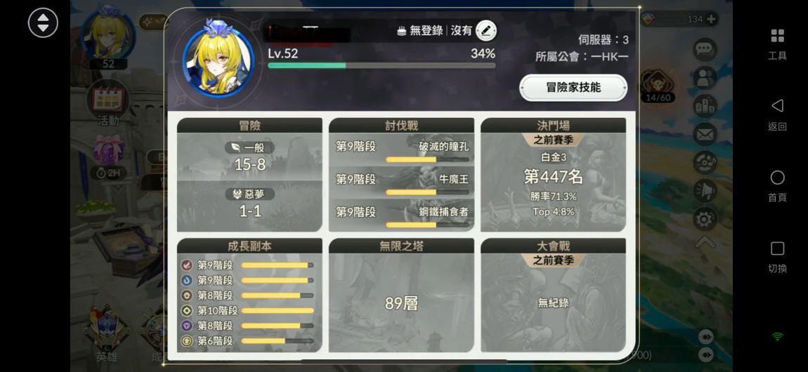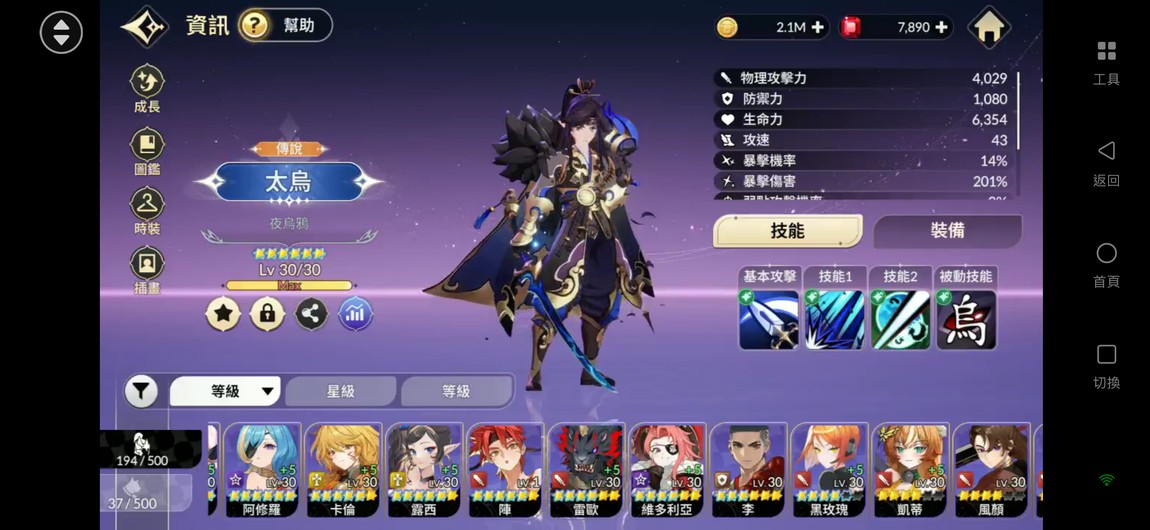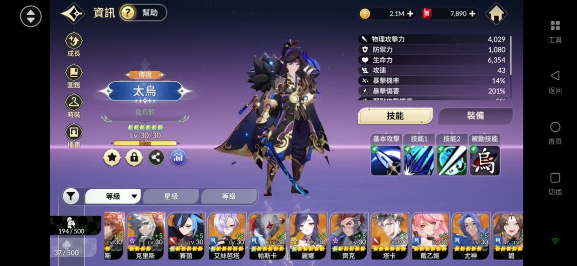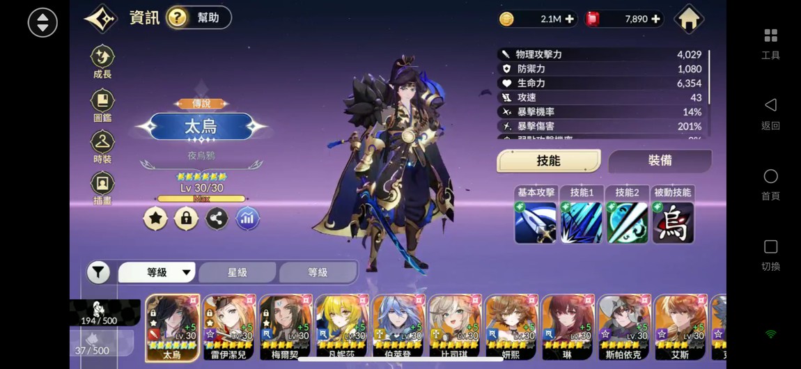 【52等】太烏突6 討伐3C都有 功能角都有練 攻城角剩露尼沒有 持續玩如圖