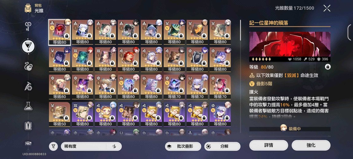 【男、70等、37金角、25金專】21遐蝶 1命海瑟音 流螢 01白厄 緹寶 大黑塔 知更鳥 0命刻律德菈 長夜月