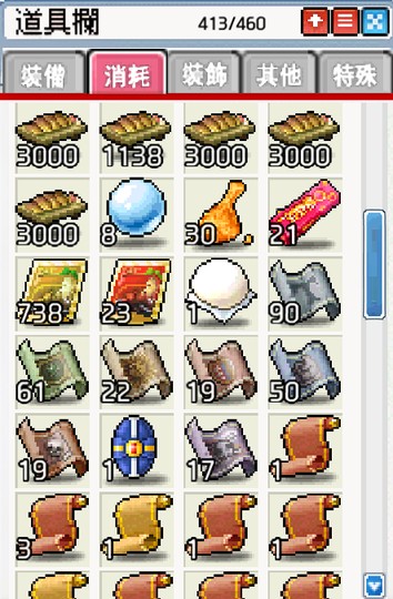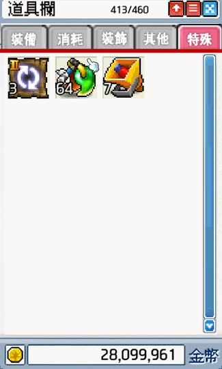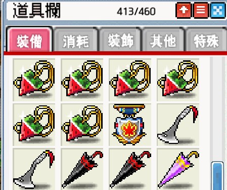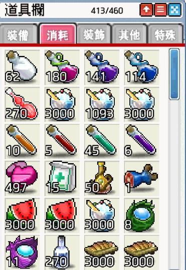 身上全部東西都不動都給你,包包開到460,身上還有兩千八百萬,還圖上的商城道具